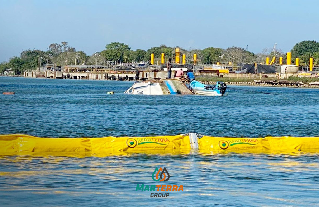 Sistemas flotantes que limitan la propagación de derrames y estabilizan el área de trabajo.